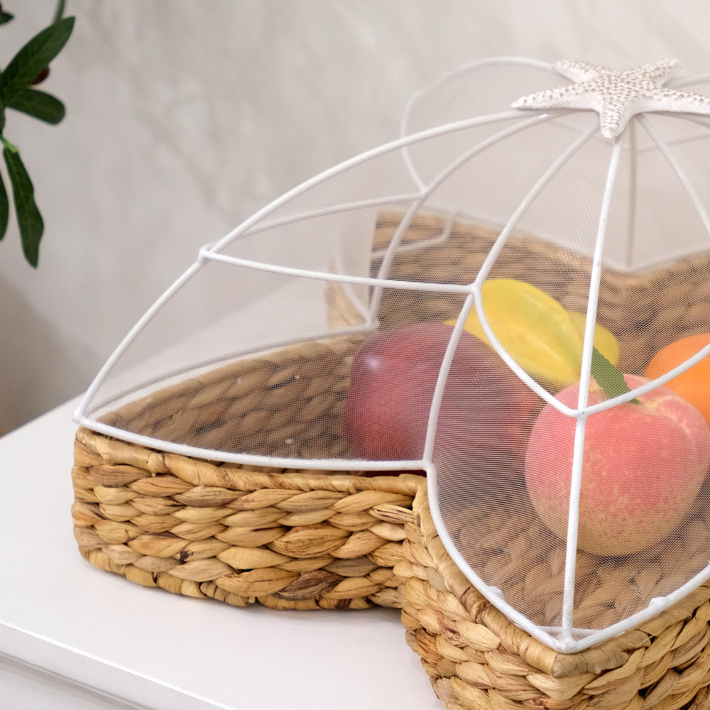 Introducing the Water Hyacinth Star Tray — a captivating fusion of Vietnamese craftsmanship and rustic elegance. Handwoven from natural water hyacinth, this star-shaped tray features warm, earthy textures and a delicate white mesh food cover that adds both charm and functionality. Ideal for serving snacks or fruits during gatherings, it keeps food protected from insects while enhancing your dining space with artisanal style.