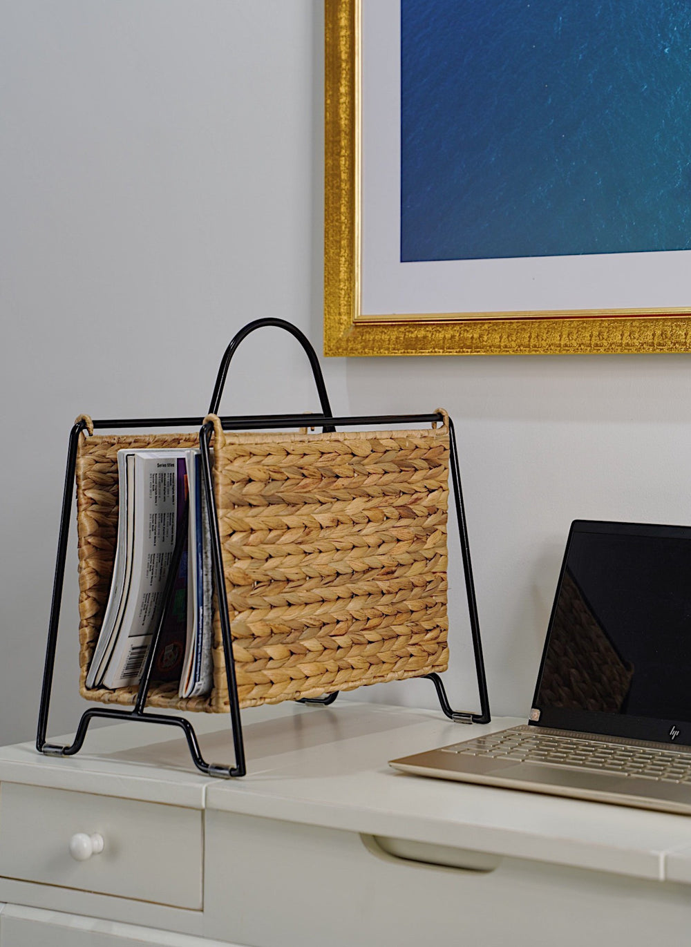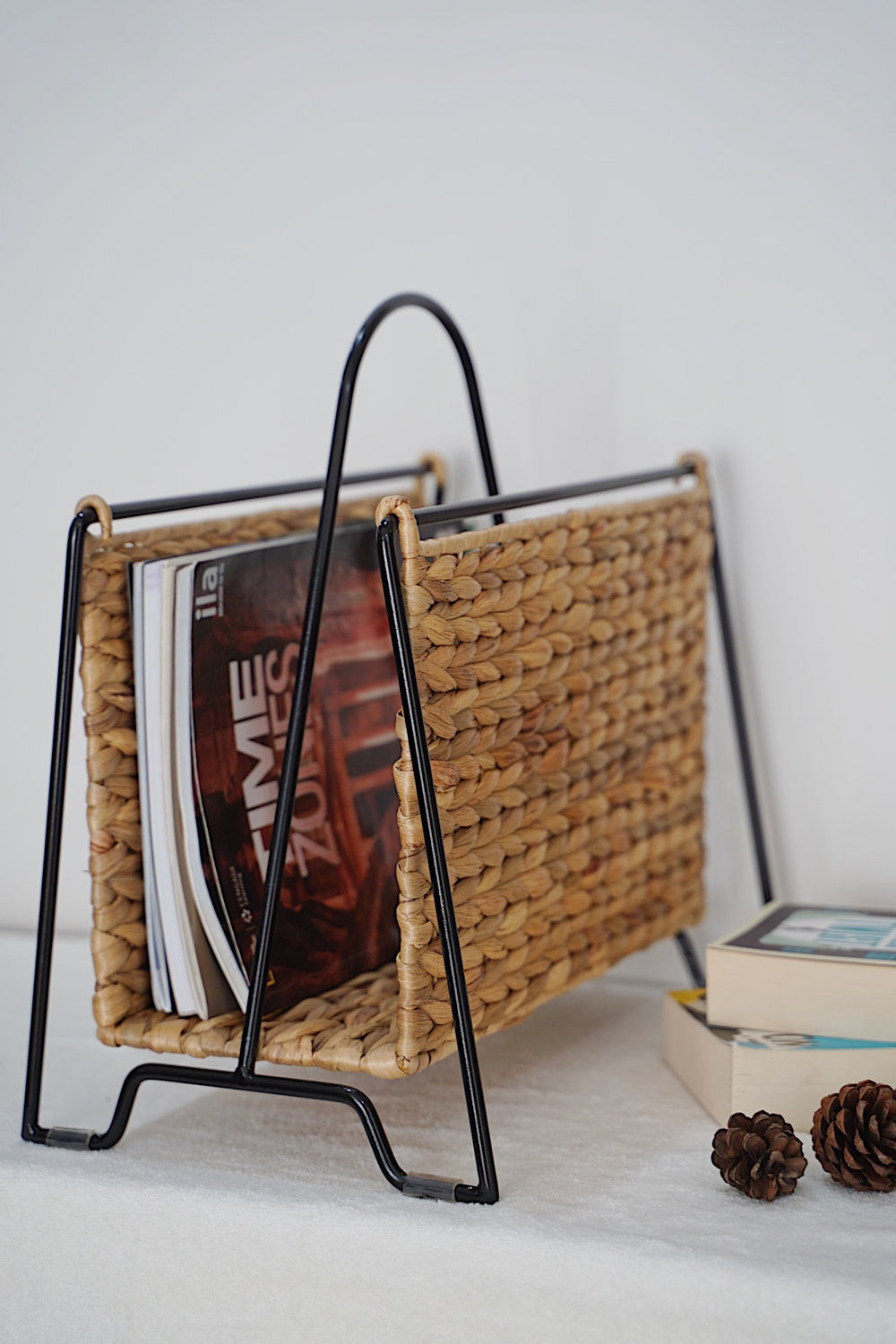 When you love reading magazines, newspaper but unsure where to put them. This magazine holder is the right item for you to put your magazine away. It is handcrafted in Vietnam with dried natural water hyacinth, carefully arrow woven into shape with fixed metal handle.